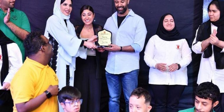 الفنانة الكويتية شجون الهاجري والكاتب المميز فهد عليوة فى زيارة لمركز راشد لاصحاب الهمم .