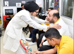 “Meeting with Her Excellency Dr. Hala Zayed, former Egyptian Minister of Health, and businesswoman and friend Manal Attia, to discuss arrangements for an upcoming project for people of determination and children with cancer.”